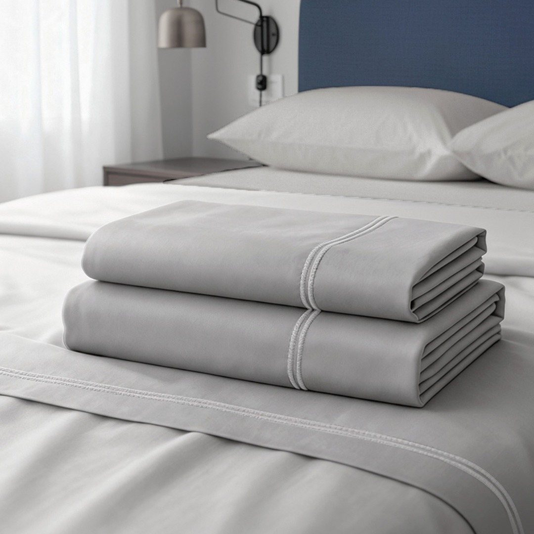 SET SABANAS 400 HILOS ALGODON EGIPCIO COLOR GRIS PLATA