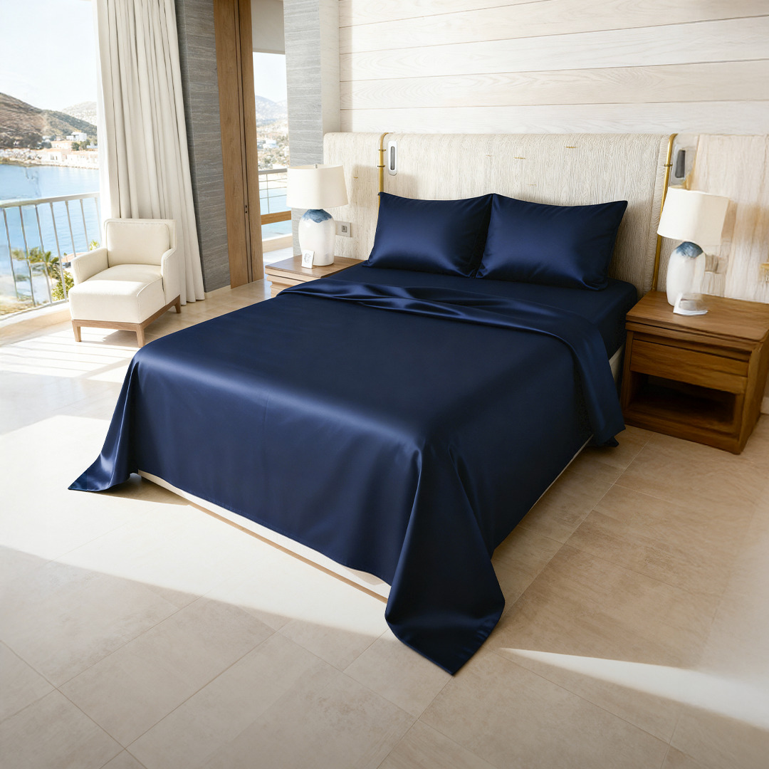 SET SABANAS BAMBU ORGANICO 400 HILOS EXTRA SUAVES COLOR AZUL MARINO