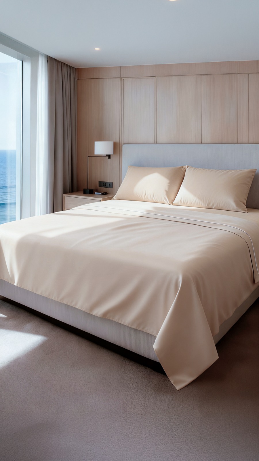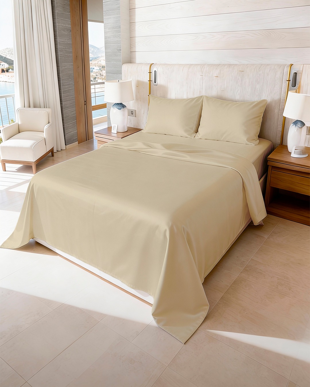 SET SABANAS 400 HILOS ALGODON EGIPCIO COLOR BEIGE RIBETE BORDADO BEIGE