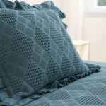 COLCHA PORTUGUESA MAIA DOBLE VOLADO Y PUNTILLA COLOR AZUL